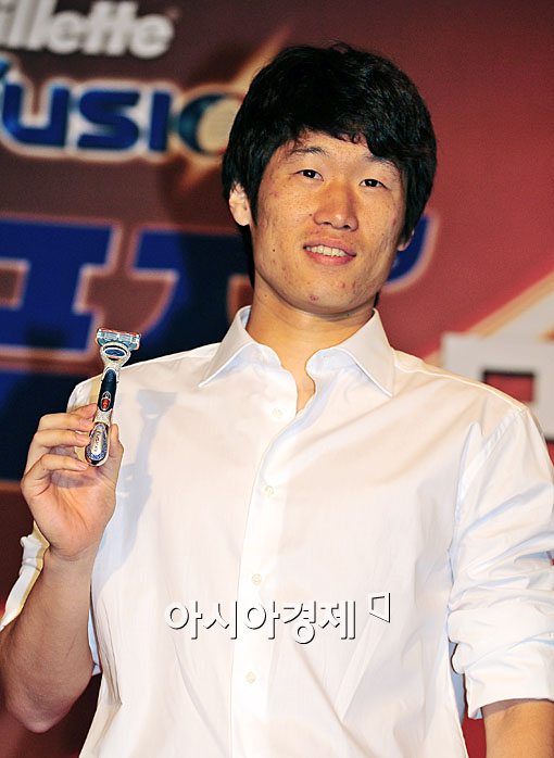 질레트 100년 역사상 처음으로 한국인 모델로 선정된 박지성 선수가 22일 서울 용산구 한남동 하얏트 호텔에서 기념 행사를 가졌다.
