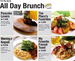 더플레이스 브런치 메뉴는 팬케이크 러버스(Pancake Lovers), 더 플레이스 페이브릿츠(The Place's Favorites), 모닝 오브 나폴리(Morning of Napoli), 마이 패이브릿 프랜치 토스트(My Favorite French Toast)의 총 4종으로 구성돼 있다.