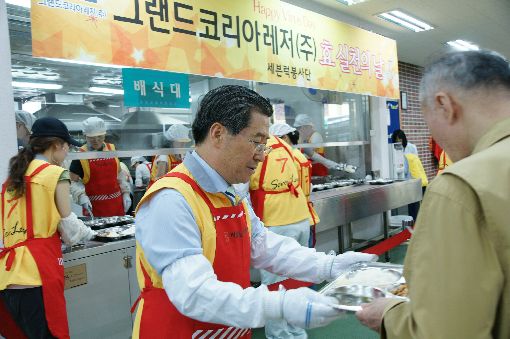 외국인전용 카지노 '세븐럭'을 운영하는 그랜드코리아레저(주) 권오남(사진) 사장과 봉사단은 '효 실천의 날'을 맞이해 24일 서울 종로구 경운동 서울노인복지센터에서 노인 2000여명을 대상으로 무료급식 봉사활동을 펼쳤다.