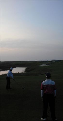 여명과 함께 첫 티 샷을.