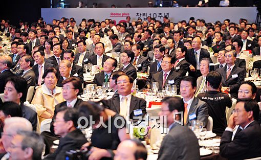 창립 10주년을 맞이한 홈플러스가 6일 오후 서울 중구 장충동 신라호텔에서 고객,협력사와 각계 인사 등 600여명을 초대해 '큰 바위 얼굴 경영 언약식'이라는 타이틀로 창립 10주년 행사를 갖고 있다.윤동주 기자 doso7@asiae.co.kr<ⓒ세계를 보는 창 경제를 보는 눈, 아시아경제(www.asiae.co.kr) 무단전재 배포금지>