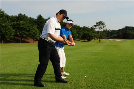 프로선수들은 홀의 형태나 바람의 방향, 그리고 장애물의 유무에 따라 의도적으로 샷을 휘어진다.바로 페이드와 드로우 샷이다. 오른쪽으로 휘어지는 페이드 샷은 아이언 샷에서 특히 효과적이다. 그린에 볼을 세우는데 안성맞춤이기 때문이다. 똑바로 날아가다 끝에서 살짝 왼쪽으로 도는 드로우 샷은 비거리가 우수하고 런도 많아 근력이 달리는 여성골퍼들에게는 강력한 무기가 될 수 있다. 몇 가지 기본적인 원리만 이해하면 이런 샷들이 가능하다. ▲ 페이드는 열고, 드로우는 닫는다= 기본은 역시 어드레스 자세다. 페이드의 경우는 볼이 오른쪽으로 휘기 때문에 타깃보다 왼쪽을 겨냥해야 한다. 왼발을 열고, 어깨와 무릎의 정렬선도 좌측을 향하게 한다. 하지만 페이스는 타깃 방향으로 정렬한다. 볼도 평상시 보다 1개 정도 왼발쪽에 둔다. 드로우의 경우는 반대다. 왼발을 앞으로 약간 내밀어 닫고 어깨와 무릎 정렬선이 타깃 우측을 향하게 한다. 페이스는 역시 타깃을 조준한다. 볼은 평소보다 1개 정도 우측에 둔다. 페이드와 드로우를 구사할 때 페이스를 의도적으로 조절하지 않는 이유는 어드레스 자세 수정만으로도 충분하기 때문이다. 페이스를 조작하다보면 오히려 실수를 범하기 쉽다. <사진1>의 페이드 샷을 날릴 때의 모습을 보자. 어드레스를 열어둔 상태에서 백스윙을 했기 때문에 클럽은 자연스럽게 타깃라인 바깥쪽으로 빠지면서 올라오게 된다. 페이스는 살짝 열려 있다. 이후 다운스윙 때는 클럽이 바깥에서 안쪽으로 흐르면서 임팩트 구간을 비스듬히 자르고 나간다. 드로우 어드레스 자세를 취하면 클럽은 반대로 인사이드- 아웃의 궤도로 흐른다.[사진2] 손이 클럽헤드보다 낮은 상태로 피니시를 마치는 동작만으로도 페이드 샷을 날릴 수 있다.