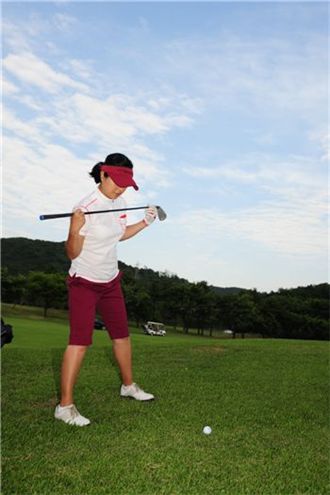 ▲ '4분의 3 스윙으로'= 아마추어골퍼들에게는 사실 경사지 샷 자체가 트러블 샷이다. 현상황을 탈출하는 데 목적을 두고 4분의 3 스윙을 구사하라는 이야기다.아마추어골퍼들은 자신의 스윙은 크지 않다고 생각하지만 동영상으로 촬영해보면 대부분 경사지에서도 큰스윙을 한다. <사진3>처럼 백스윙에서 양손이 어깨 위를 넘어서는 절대 안된다. 하체의 움직임도 최소화한다. 스윙은 경사면을 따라 클럽이 지나간다는 이미지로 가져가는 것이 최상이다. 어드레스에서 경사면과 수평으로 서는데 공을 들이는 것도 이를 위한 사전포석이다. 연습스윙을 하면서 클럽이 어디를 지나가는지를 미리 파악해 볼의 위치를 정하는 것도 방법이다. 고수들의 전략은 바로 이런데서 눈에 띈다. 경사지에서도 페어웨이우드를 선택하는 골퍼들은 무조건 초ㆍ중급자로 보면 된다.고수들은 자신이 컨트롤하기 쉬운 골프채로 다음 샷을 위한 거리만 딱 보내는 전략을 구사한다. 보너스팁은 오르막의 경우 탄도가 높아 볼이 착지 후 런이 별로 없는 대신 내리막에서는 탄도가 낮아 런이 많다. ▲ 지도= 김성곤 프로 tittle990@hotmail.com▲ 정리= 김세영 기자 freegolf@asiae.co.kr▲ 사진= 윤동주 기자 doso7@asiae.co.kr▲ 클럽 및 의상 협찬= 투어스테이지▲ 장소협찬= 제일골프장