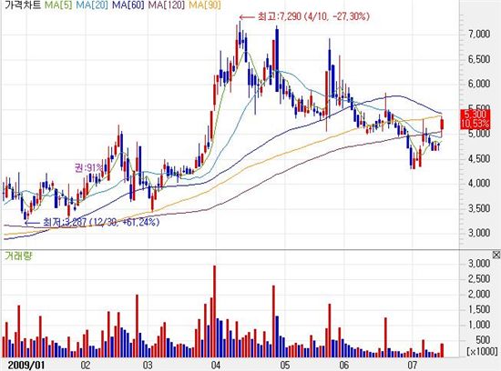 엔하이테크가 LED 조명 매출이 가시화 되면서 주가가 연일 가파른 상승세를 기록하고 있다.14일 오전 9시34분 현재 엔하이테크는 전일 대비 445원(9.28%) 오른 5240원에 거래되고 있다.이날 동양종금증권은 엔하이테크에 대해 올해 예상 매출액과 영업이익이 각각 전년대비 17.5%, 156.1% 증가할 것으로 추정했다. 매출액과 영업이익이 각각 524억원과 47억2000만원을 달할 것으로 분석됐다.이상윤 애널리스트는 "1·4분기에 5억원에 불과했던 LED 조명 매출이 2분기에 30억원을 기록했기 때문"이라며 "매출 증가에 따른 고정비 효과가 발생한 점도 긍정적"이라고 설명했다. 이 애널리스트는 이어 "지난해 2.8% 수준에 불과했던 LED 조명 매출비중은 올해 25 .8%까지 증가할 것"이라며 "하반기에는 글로벌게이츠, 맥스엘이디 등의 고객사를 통해 샤프, 하네다 공항, NHK 방송국 등에 엔하이테크의 캐노피등 및 LED 형광등이 설치될 예정"이라고 강조했다.