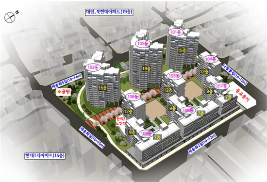 서울 상계동에 고층과 저층, 탑상형ㆍ판상형ㆍ연도형 등 다양한 디자인이 겹합된 주거지 맞춤형 아파트가 들어선다. 서울시와 노원구청이 주민들과 협의해 계획을 변경한데 따른 결과다.서울시는 15일 노원구 상계동 1050-2 일대를 주택재건축 정비구역으로 지정 고시할 예정이라고 밝혔다. 이에 따라 이곳에 아파트 9개동, 369가구가 들어서는데 고층아파트 연접지역은 15∼18층 규모로, 저층주택지 밀집지역에 접한 곳은 7∼9층 규모의 저층으로 짓도록 할 방침이다.당초 이곳에는 지상18층, 4개동이 들어서도록 돼 있었지만 시와 구청이 주민들과 협의를 통해 주변 기존 주택지에 순응하는 계획을 수립했다.주거지 맞춤형 아파트 계획을 수립하면서 아파트 주동형태를 다양화해 디자인도 강화하기로 했다. 저층 지역과 면하는 곳에는 가로의 단절을 막기 위해 연도형 주동을 배치했고 상층부에는 공동주거를, 그 하층부에는 아케이드형 상가를 계획해 주민의 왕래가 빈번하도록 가로활성화를 꾀했다.보행 단절을 막기 위해 중앙으로 연결되는 공공보행통로의 기능을 부여, 보행자 중심의 공간으로 대체할 수 있도록 계획했다. 시는 앞으로 다른 구역에서도 이번과 같은 주거지 맞춤형 아파트 사례가 참고, 보급될 것으로 기대하고 있다.서울시 관계자는 "협소한 도로, 부족한 주차공간 및 녹지면적 등 노후화된 단독주택지를 주거동의 층수변화, 주거유형의 다양화 및 공공보행통로 확보 등을 통해 실현한 것이 이번 정비구역 지정의 의미"라고 설명했다.