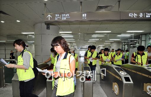 지하철 9호선 개통을 앞두고 16일 오전 서울 당산역에서 열린 최종 테스트에 참석한 대학생 모니터들이 수도권 전철 전 역사와 서울·경기버스를 대상으로 9호선과 연계가 안정적으로 이뤄지는지를 점검하고 있다. 서울시는 최종 테스트 결과에 따라 9호선 개통 일자를 확정할 예정이다. 이재문 기자 moon@asiae.co.kr<ⓒ세계를 보는 창 경제를 보는 눈, 아시아경제(www.asiae.co.kr) 무단전재 배포금지>