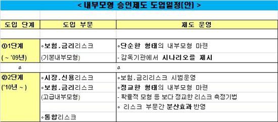 보험·금리리스크 산출적용 후 시장·신용리스크 반영위험기준 자기자본 산출 가능...자본절감 효과 기대지난 4월 보험업계 공통의 위험계수를 적용해 위험기준 자기자본을 산출하도록 한 내부모형 승인제도제도가 2단계로 나눠 추진된다.금융감독원은 21일 보험사들의 리스크관리를 보다 선진화하기 위해 보험회사별 리스크 특성을 반영해, 자기자본을 산출하는 '내부모형 승인제도(RBC,Risk Based Capital)'를 도입할 계획이라고 밝혔다.내부모형 승인제도란, 금융감독기관이 제시한 필요요건을 충족하고 이를 승인받은 금융회사가 자체 리스크관리시스템을 통해 요구자본을 산출토록하는 제도다. 제도 도입시 금융회사는 현행 표준모형과 내부모형 중 양자택일이 가능하다.이 제도는 국제보험감독자협의회(International Association of Insurance Supervisors)와 바젤은행감독위원회 등 국제감독기구에서도 금융기관의 리스크관리 개선을 유도하기 위해 사용을 권고해왔다.다만 금융당국이 제시한 승인기준을 충족한 보험회사는 내부모형 도입을 자율적으로 선택할 수 있으나, 충족하지 못한 보험회사는 현행방식으로 자기자본 산출해야 한다.이에 따라 1단계로 오는 2010년까지 보험회사 고유리스크인 보험·금리리스크 산출을 위한 내부모형을 우선 적용하고, 이후부터 시장·신용리스크 산출을 위한 내부모형을 적용할 예정이다.이는 금융당국은 제도도입의 용이성을 확보하고 보험회사가 충분한 준비기간을 가질수 있도록 단계적으로 도입하도록 한 것이며, 충분한 시범운영을 통해 연착륙을 유도하기 위한 차원이다.금융감독원은 제도 도입을 통해 보험사가 양질의 리스크관리 절차를 수행할 수 있고, 리스크중심의 경영문화체제를 구축해 보험회사 리스크관리를 한 단계 업그레이드하는 계기가 될 것으로 내다봤다.아울러 내부모형을 도입한 보험사는 정밀하게 위험기준 자기자본 산출이 가능한 만큼 자본절감 효과를 기대할 수 있을 것이라고 설명했다.김양규 기자 kyk74@asiae.co.kr<ⓒ세계를 보는 창 경제를 보는 눈, 아시아경제(www.asiae.co.kr) 무단전재 배포금지>