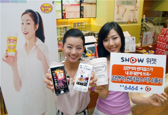 김연아와 원더걸스를 휴대폰 대기화면에서 볼 수 있는 모바일 서비스가 등장했다. KT(회장 이석채)는 피겨 스타 김연아와 인기가수 원더걸스 이미지를 활용한 'SHOW 위젯 미니'를 선보인다고 22일 밝혔다. KT에 따르면 이번에 출시된 상품은 김연아 미니 3종, 원더걸스 미니 2종으로 휴대폰에 다운받아 대기화면에 띄워놓고 언제든 볼 수 있으며, 시간이 함께 나오는 형태도 있어 개성 넘치는 휴대폰 시계로도 활용할 수 있다. KT는 김연아 미니는 음료 브랜드인 '스무디킹'과 함께, 원더걸스 미니는 뷰티 브랜드 '페리페라'와 함께 제작했다고 밝혔다. 이에 따라 김연아 미니를 다운받는 모든 고객들에게는 스무디킹 음료 '연아 스무디' 사이즈업 쿠폰이 바코드 형태로 제공되며, 다운받은 후 60일간, 1일 1회 총 60회까지 사용이 가능하다. 미니를 실행하면 김연아 미니홈피 바로가기와 CF 메이킹필름 동영상 보기로도 연결이 된다. 또한 원더걸스 미니를 실행하면 페리페라 제품 설명 페이지로 연결된다.미니를 다운 받으려면 휴대폰으로 무선인터넷에 연결하거나 SHOW 웹사이트 ()에 접속한 후, 폰꾸미기 카테고리 내 '위젯 페이지'에서 해당 미니를 선택하면 된다. KT는 이번 김연아 및 원더걸스 미니 출시를 기념해 오는 8월 20일까지 해당 미니를 다운 받은 고객들을 대상으로 경품 이벤트도 진행할 예정이다. 'SHOW 위젯 서비스'는 KT가 지난 2007년 선보인 모바일 위젯 서비스로 현재 하루 평균 18만명이 이용하고 있으며 155종의 단말기에서 쓸 수 있다. 김철현 기자 kch@asiae.co.kr<ⓒ세계를 보는 창 경제를 보는 눈, 아시아경제(www.asiae.co.kr) 무단전재 배포금지>