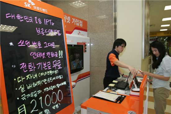 SK브로드밴드(사장 조 신)가 국내 1위 대형할인점 이마트에 입점하며 올해 하반기 영업 채널 강화에 나서고 있다.SK브로드밴드는 전국 주요 87개 이마트 매장에 입점을 마치고 대면영업에 적극적으로 나선다고 11일 밝혔다. 이에 따라 소비자들은 이마트에서 쇼핑도 하면서 SK브로드밴드의 초고속인터넷, 인터넷전화, IPTV 서비스 등 다양한 통신 서비스의 상담 및 신청을 할 수 있게 됐다.SK브로드밴드는 오는 10월말까지 이마트 입점 매장을 전국 100개로 확대한다는 계획이다. SK브로드밴드는 이마트 외에도 롯데마트, 홈플러스 등 전국 30여개 대형할인점에서 통신서비스 홍보 및 가입 행사를 전개하는 한편 전국 1800여개의 SK텔레콤 대리점에서 결합상품 T밴드를 앞세워 신규 고객을 유치하는 등 영업 채널을 다양화하고 있다. 이를 통해 올해 상반기에만 초고속인터넷 가입자 20만5000명을 신규로 확보하는 등 적극적인 마케팅 활동을 펼치고 있다. 안승윤 SK브로드밴드 마케팅부문장은 “고객을 더욱 친근하게 만날 수 있는 영업 채널을 만들기 위해 국내 1위 대형할인점인 이마트에 입점하게 됐다”며 “편리한 통신서비스를 직접 살펴보고 신청할 수 있는 대면영업을 확대함으로써 상반기에 이어 하반기에도 가입자 순증 규모 1위를 이어갈 것”이라고 말했다.