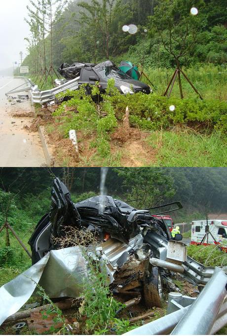 [아시아경제신문 강승훈 기자] 최근 교통사고를 당한 빅뱅 대성의 차량 사진이 공개됐다.자동차 포털사이트 '보배드림'에는 12일 '대성군 차량사고 현장사진입니다'라는 제목의 글과 사진이 게재됐다.대성의 차량은 형체를 알아보기 힘들 정도로 심하게 부서져 있다. 당시 사고의 심각성을 일깨워주는 사진이다. 당시 대성은 조수석에 앉아 있었던 것으로 확인됐다. 조수석은 상대적으로 다른 좌석에 비해 파손 상태가 양호한 편이다.네티즌들은 "대성이 살아 남은 것은 기적"이라며 놀란 가슴을 쓸어내렸다. 사고는 지난 11일 오후 4시께 '패밀리가 떴다'의 촬영을 마치고 서울로 귀가하던 대성 차량이 평택 부근 터널을 빠져나오면서, 빗길에 미끄러져 일어났다.사고로 인해 대성은 척추횡돌기 부상과 찰과상을 입고 현재 서울 모 병원에서 입원 치료중이다. 운전을 하던 매니저도 팔 등에 상처를 입었고, 뒷자리에 앉아 있던 코디네이터는 다리를 심하게 다쳐, 긴급 수술을 받았다.강승훈 기자 tarophine@asiae.co.kr<ⓒ아시아경제 & 스투닷컴(stoo.com)이 만드는 온오프라인 연예뉴스>