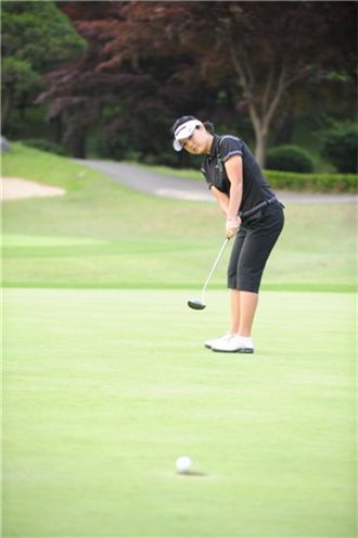 고수가 되기 위해서는 무엇보다 그린에서 타수를 줄여야 한다. 아마추어골퍼의 경우 퍼팅 수가 오히려 필드 샷의 타수 보다 많을 때도 있다. 홀까지의 거리감과 방향에 대한 감각이 부족하기 때문이다. 이런 약점을 보완하기 위해서는 먼저 올바른 그립과 셋업 자세가 중요하다. 한 라운드에서 3퍼트만 절반 수준으로 낮춰도 5타 이상은 손쉽게 줄일 수 있다. ▲ 헤드의 무게를 느끼자= 퍼팅 역시 신체와 클럽을 연결하는 유일한 접점은 그립이다. 그립이 잘못되면 퍼팅 전체의 일관성이 떨어질 수 밖에 없다. 아마추어골퍼들은 특히 그립을 너무 세게 잡는데서 실수가 시작된다. 가볍게 쥐어야 헤드의 무게를 느낄 수 있고, 정확도도 높아진다.두번째는 손목 사용이다. 이렇게하면 왼쪽으로 당겨치게 된다. 아무리 노력해도 안된다면 아예 <사진1>처럼 '역그립'(크로스핸드)을 취하는 것도 하나의 방법이다. 왼손이 오른손 아래에 놓이면서 자연스럽게 손목사용을 억제해 준다. 역그립은 그러나 중ㆍ장거리 퍼팅에서 거리감이 떨어지는 약점도 있다. 이를 위해 연습을 통해 '나만의 거리감'을 만들어야 한다.[사진2] 양팔이 삼각형을 이룬 상태에서 시선은 볼 뒤를 바라본다.