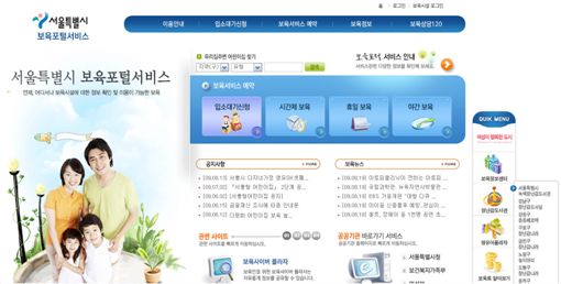 서울시 보육보털시스템 아이서울닷컴(아이서울.com)은 서울형 어린이집 시행에 맞춰 지난 1월 초 문을 열었다. 아이서울닷컴은 기관이나 분야별로 분산돼 있던 보육시설에 관한 정보를 한 곳에 모은 사이트다. 여기서는 어린이집 입소 신청과 시간연장, 휴일, 24시간 보육서비스 등 맞춤형 보육의 예약과 이용 방법을 알려준다.네이버, 엠파스 등 인터넷포털과도 연계해 다양하고 유익한 육아정보를 제공한다.아이를 둔 엄마들에게는 인기가 좋다. 지금까지 다녀간 방문객 숫자만 127만명. 하루 평균 5000여명이 넘는 아빠, 엄마들이 이곳을 찾아 보육에 관한 정보를 찾는다. 아이서울닷컴에서는 어린이집에 대한 정보검색과 입소신청, 입소 대기순번 확인이 가능하다. 장애아나 다문화(외국인) 가정에서는 장애아통합 보육시설이나 다문화가정자녀 보육시설도 손쉽게 찾을 수 있다. 보육시설이 운영되지 않는 휴일, 야간 등 긴급하게 보육시설을 이용할 필요가 있는 경우에는 부모들이 인터넷으로 예약하면 문자서비스(SMS)로 이용에 대해 안내해 주기도 한다.이전에 보육과 관련한 정보를 찾으려면 이곳 저곳을 기웃거려야 했지만 그런 불편은 사라졌다. 어린이집 입소순위를 놓고도 민원이 많았다. 하지만 여기에서는 시설별 입소순위가 실시간 공개되기 때문에 분쟁의 여지도 줄었다.다른 효과도 있다. 신현봉 서울시 보육담당관은 "시설의 정보가 인터넷을 통해 실시간 전달되기 때문에 보육시설 간 경쟁을 통한 보육환경 개선에도 효과가 좋다"고 설명했다. 아이서울닷컴에 직접 접속하거나 서울시 보육정보센터, 보육사이버플라자 홈페이지에 접속해 해당 배너를 클릭하면 보육포털시스템 서비스를 이용할 수 있다.지난해 말 기준 서울의 보육대상 아동은 53만명이고 이중 보육시설에 다니는 아동은 18만6000여명이다. 김민진 기자 asiakmj@asiae.co.kr<ⓒ세계를 보는 창 경제를 보는 눈, 아시아경제(www.asiae.co.kr) 무단전재 배포금지>