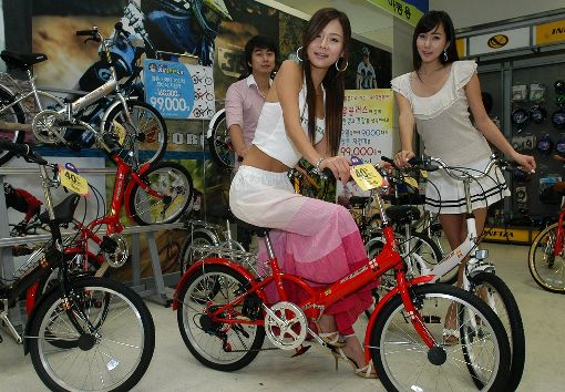 홈플러스는 자전거 할인행사를 9월말까지 전국매장에서 진행한다.고객이 홈플러스 자전거 할인행사장에 진열된 자전거를 타고 있다.