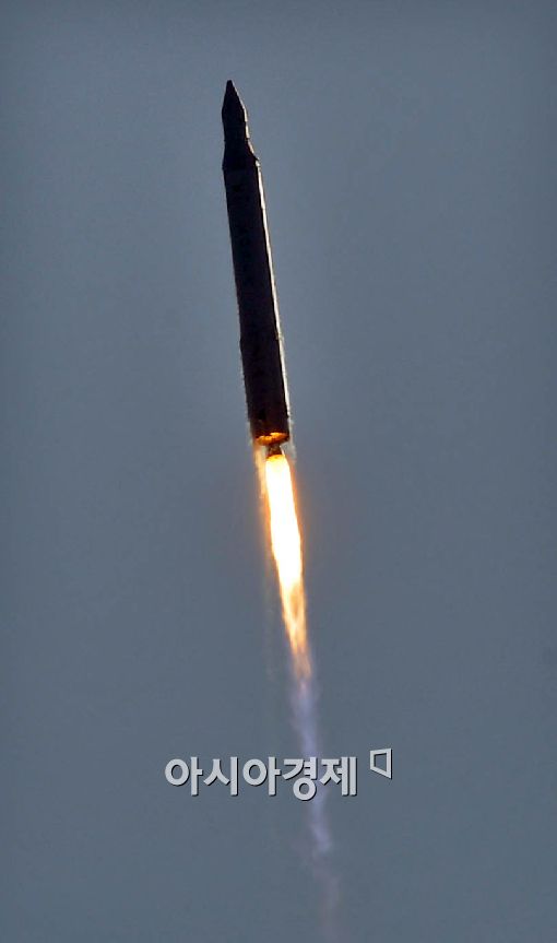 우리나라 첫 우주발사체 '나로호(KSLV-1)'가 25일 오후 5시 전남 고흥군 외나로도 나로우주센터에서 힘차게 날아오르고 있다.이재문 기자 moon@asiae.co.kr<ⓒ세계를 보는 창 경제를 보는 눈, 아시아경제(www.asiae.co.kr) 무단전재 배포금지>