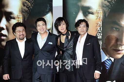 [아시아경제신문 이기범 기자]배우 고창석(왼쪽부터), 신승환, 장근석, 정진영이 31일 오후 서울 동대문 메가박스에서 열린 영화 '이태원 살인사건' 시사회 기자간담회에서 포토타임을 갖고 있다. 이기범 기자 metro83@asiae.co.kr<ⓒ아시아경제 & 스투닷컴(stoo.com)이 만드는 온오프라인 연예뉴스>