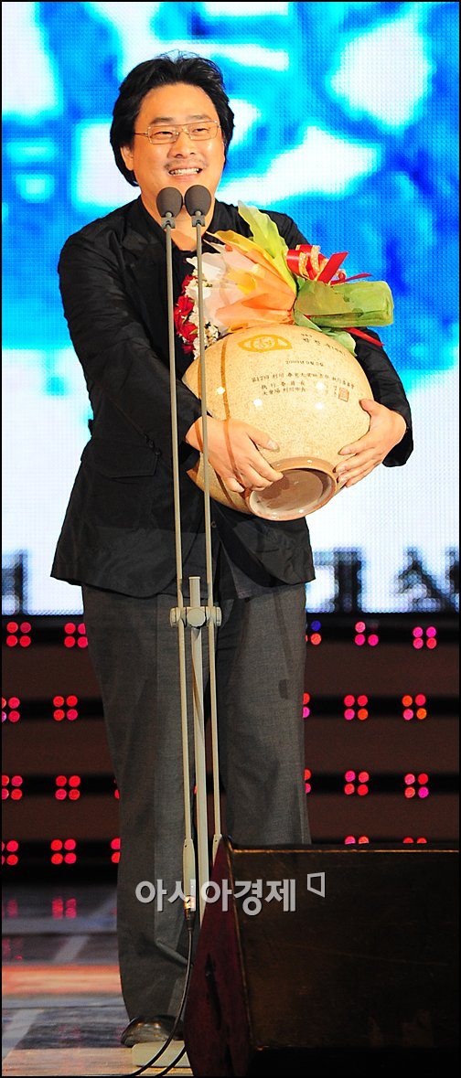 [아시아경제신문 고경석 기자]박찬욱 감독이 17회 이천춘사대상영화제(이하 춘사영화제) 감독상을 차지했다. 박찬욱 감독은 5일 오후 7시 경기도 이천시 설봉공원 도자기엑스포 야외특설공연장에서 김성주, 고은아의 사회로 진행된 17회 춘사영화제 시상식에서 '박쥐'로 감독상을 수상했다. 이날 시상은 지난해 감독상을 수상한 '크로싱'의 김태균 감독이 맡았다.박찬욱 감독이 연출한 '박쥐'는 뱀파이어가 된 가톨릭 신부가 우연히 만나게 된 옛 친구의 아내와 사랑에 빠지면서 극단적인 결말로 치닫게 되는 과정을 그린 치정 멜로영화로 올 칸국제영화제 심사위원상 수상작이다. 박 감독은 "함께 이 영화를 만든 배우, 스태프들과 수상의 기쁨을 함께하고 싶다"고 소감을 밝혔다.이날 시상식에서 박찬욱 감독은 '국가대표'의 김용화 감독, '서양골동양과자점'의 민규동 감독과 감독상을 놓고 경합을 벌였다. 한편 경기도 이천시와 한국영화감독협회가 공동 주최하는 이천춘사대상영화제는 영화 '아리랑'으로 유명한 춘사 나운규 감독의 영화사적 의미를 기리는 취지로 1990년 시작됐다. 고경석 기자 kave@asiae.co.kr사진 박성기 기자 musictok@<ⓒ아시아경제 & 스투닷컴(stoo.com)이 만드는 온오프라인 연예뉴스>