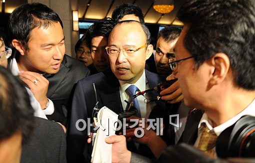 10일 오후 서울 장충동 신라호텔에서 열린 전경련 회장단 회의에 김승연 한화그룹 회장이 기자들 질문에 받으며 회의장으로 들어서고 있다.윤동주 기자 doso7@asiae.co.kr<ⓒ세계를 보는 창 경제를 보는 눈, 아시아경제(www.asiae.co.kr) 무단전재 배포금지>