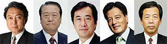 (왼쪽부터) 하토야마 유키오, 오자와 이치로, 간 나오토, 오카다 가쓰야, 히라노 히로후미 내정자