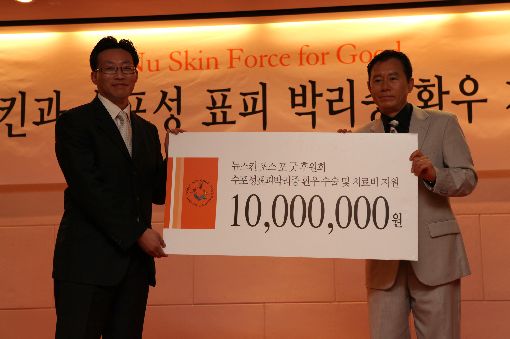 20일 뉴스킨코리아(대표 유병석) 주최로 열린 '제7회 수포성표피박리증 환우회'에서 박석범 뉴스킨 포스 포 굿 후원회장이 차현석 환우회장에게 치료비 지원증서를 전달하고 있다.조인경 기자 ikjo@asiae.co.kr<ⓒ세계를 보는 창 경제를 보는 눈, 아시아경제(www.asiae.co.kr) 무단전재 배포금지>