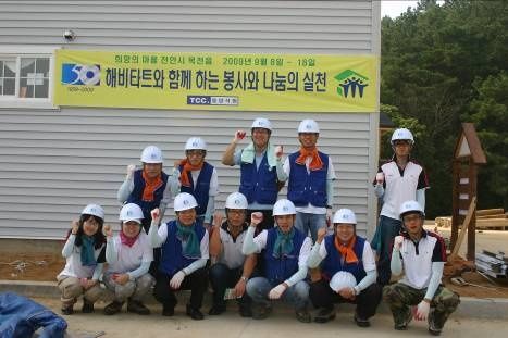 사랑의 집짓기 운동에 참여한 동양석판 직원들.