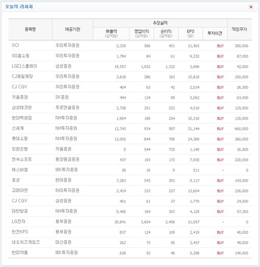 우리투자증권은 23일 OCI에 대해 폴리콘 생산 급증에 따른 이익 개선이 기대된다며 목표주가를 기존 27만원에서 30만원으로 상향 조정했다. 투자의견은 매수를 유지했다. 김재중 애널리스트는 "폴리실리콘 수급이 예상보다 긍정적인 것으로 판단된다"며 " OCI의 2009년 2010년 폴리실리콘 판매량 전망치를 종전대비 각각 6.1%, 3.2% 상향 조정하는 한편 2009년, 2010년 주당순이익(EPS) 전망치를 종전대비 각각 11.5%, 8% 올린다"고 밝혔다. 그에 따르면 OCI의 3분기 영업이익은 전분기 대비 53.5% 급증한 1690억원을 기록할 전망이다. 김 애널리스트는 "화학사업 주요제품 가격도 강세를 보임에 따라 폴리실리콘 공장 감가상각비 증가에도 불구하고 3분기 영업이익이 두드러진 개선세를 나타낼 것"이라고 전했다. 임선태 기자 neojwalker@asiae.co.kr<ⓒ세계를 보는 창 경제를 보는 눈, 아시아경제(www.asiae.co.kr) 무단전재 배포금지>
