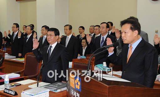 [아시아경제 윤동주 기자] 백용호 국세청장이 6일 오전 종로구 수송동 국세청에서 열린 국정감사에 참석해 증인선서를 하고 있다.윤동주 기자 doso7@asiae.co.kr<ⓒ세계를 보는 창 경제를 보는 눈, 아시아경제(www.asiae.co.kr) 무단전재 배포금지>
