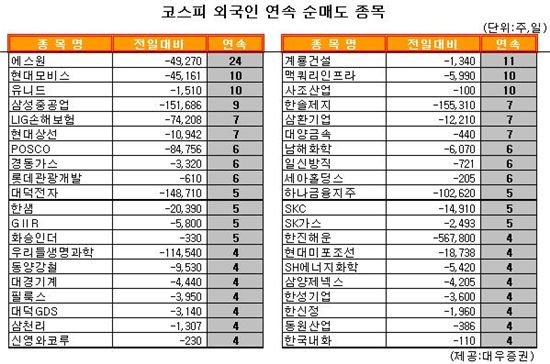 [표] 외국인, 에스원 24거래일 연속 순매도