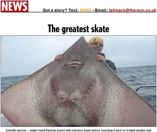 [아시아경제 이진수 기자] 네덜란드의 한 낚시꾼이 113kg짜리 초대형 홍어를 잡아 화제다.영국 타블로이드 신문 ‘더 선’은 네덜란드의 강태공 한트 디크만이 최근 아일랜드와 영국 본토 사이 아일랜드해(海)에서 113kg짜리 초대형 홍어를 잡았으나 영국 신기록 경신에 실패했다고 7일(현지시간) 전했다.신기록 경신에 실패한 것은 괴물 홍어를 잡은 뒤 기념 촬영만 하고 바다로 돌려보냈기 때문.디크만과 다른 강태공 세 명이 합세해 괴물 홍어를 배 위로 끌어올려 보니 몸 너비가 자그마치 1.83m였다.전세 낚싯배의 해미시 커리(50) 선장은 디크만에게 “홍어를 뭍으로 끌고가 죽게 만드는 것은 나쁜 짓”이라며 “다음에 다시 만나 한 판 더 붙어보는 게 나을 것”이라고 설득했다.지금까지 영국에서 잡힌 홍어 가운데 가장 컸던 녀석의 몸무게는 103kg이다.이진수 기자 commun@asiae.co.kr<ⓒ세계를 보는 창 경제를 보는 눈, 아시아경제(www.asiae.co.kr) 무단전재 배포금지>