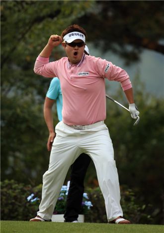[아시아경제 김현준 골프전문기자] "홀인원에 이글까지" 단연 한민규(25ㆍ삼화저축은행)의 날이었다. '탱크' 최경주(39ㆍ나이키골프)와 '메이저챔프' 양용은(37)의 등장에 시선이 집중된 신한동해오픈(총상금 7억원) 2라운드. 한민규는 그러나 무려 6언더파의 맹타를 앞세워 4타 차 선두로 달아나며 '토종스타 탄생'을 예고했다. 대회는 이날도 안개로 지연돼 최경주는 출발조차 못한 채 17일 잔여경기를 치르게 됐다.한민규는 16일 경기도 용인 레이크사이드골프장(파72ㆍ7546야드)에서 속개된 둘째날 경기에서 15번홀(파3) 홀인원에 이글 1개와 버디 3개(보기 1개)를 곁들여 이날만 6언더파, 합계 13언더파 131타를 기록했다. 전날 8개홀에서 3언더파를 쳤던 한민규는 이에앞서 1라운드 잔여경기 10개홀에서도 4언더파를 쳐 이날 하루동안 무려 10타를 줄이는 괴력을 발휘했다.한민규는 11번홀(파5) 이글로 출발부터 좋았다. 14번홀(파5) 버디에 이어 15번홀(파3)에서는 그린에 떨어진 볼이 15m를 굴러 거짓말처럼 홀로 빨려들어갔다. 한민규는 이 홀인원으로 5900만원상당의 포드 링컨 MKS 3.7L 승용차까지 부상으로 받아 부수입도 짭짤했다. 16번홀 버디로 전반에만 6타를 줄인 한민규로서는 후반 버디 1개와 보기 1개를 맞바꾼 게 오히려 아쉬울 정도였다.선두권은 위창수(37)가 7언더파를 몰아치며 4타 차 2위(9언더파)에 포진해 'PGA군단'의 체면을 세웠다. 양용은의 저력도 볼만했다. 양용은은 13번홀(파4)에서 티 샷 미스로 트리플보기라는 '치명타'를 맞았지만 후반 9개홀에서 6타를 줄이는 뒷심으로 4언더파를 쳐 기어코 공동 11위(4언더파 140타)까지 순위를 끌어올렸다.프레지던츠컵 직후 곧바로 귀국해 강행군을 펼치고 있는 양용은에게는 그래도 17일 휴식이 보장돼 꿀맛같은 휴식을 취할 수 있게 된 것도 힘을 실어주고 있다. 주최측은 이틀연속 안개로 파행운영이 계속되자 대회를 54홀 경기로 축소해 치르기로 결정했다. 양용은은 이에따라 18일 최종 3라운드를 치르게 됐고, 이날 경기가 없었던 최경주는 반면 17일 2라운드 경기를 갖는다.위창수에 이어 김경태(23ㆍ신한은행)과 김대현(21ㆍ하이트)이 공동 3위(8언더파 136타)에 포진했고, 강성훈(22.신한은행) 등 6명이 공동 5위(5언더파 139타)에서 추격하고 있는 상황이다. 2라운드를 완전히 소화한 선수가 29명 밖에 되지 않아 순위는 물론 2라운드 잔여경기 직후 다시 변동이 생길 전망이다.김현준 골프전문기자 golfkim@asiae.co.kr<ⓒ세계를 보는 창 경제를 보는 눈, 아시아경제(www.asiae.co.kr) 무단전재 배포금지>