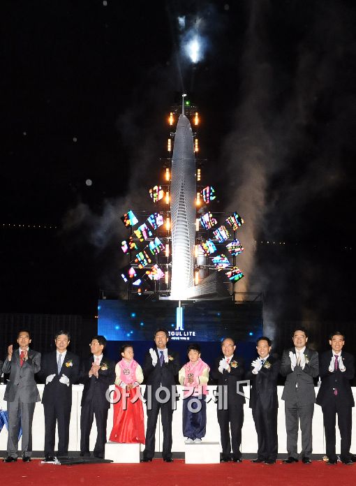 [아시아경제 이재문 기자] 133층, 640m로 아시아에서 제일 높고 세계에서 두 번째 고층 빌딩이 될 서울 DMC 랜드마크 빌딩이 5년여의 대공사에 돌입했다. 16일 저녁 서울 마포구 상암동 DMC내 빌딩 신축부지에서 새천년을 이끄는 빛’이란 주제로 열린 기공식에서 레이저와 LED 조명을 활용한 기공식 발파 세레모니가 열리고 있다.이재문 기자 moon@asiae.co.kr<ⓒ세계를 보는 창 경제를 보는 눈, 아시아경제(www.asiae.co.kr) 무단전재 배포금지>