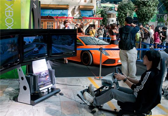 [아시아경제 함정선 기자]한국마이크로소프트(대표 김 제임스 우)는 국내 소비자를 위한 아시아 최대 규모 단일 게임 축제 'Xbox 360 인비테이셔널'을 개최했다고 18일 밝혔다. 한국MS는 이 자리에서 Xbox 360 기존 히트작과 하반기 최고 기대작들을 선보였다. 롯데월드 어드벤처 곳곳에 총 6개의 테마별 탐험존과 총 100여대의 Xbox 360 콘솔이 배치됐으며 총 4만명이 참여했다. 이번 Xbox 360 인비테이셔널 쾌속 탐험존에서는 Xbox 360 전용 하반기 최고 기대작인 고화질 레이싱게임, ‘포르자 모터스포츠 3’가 국내 소비자들에게 최초로 공개 됐다. 특히 게임에 등장하는 400여대의 차종 중 한 대인 람보르기니 무씨엘라고가 함께 전시돼 일반인들의 시선을 사로잡기도 했다.