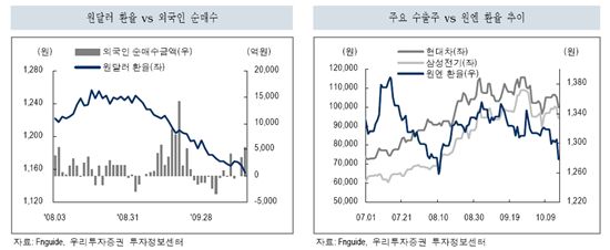 국내증시 자체만 보더라도 그리 부정적이지는 않다. 국내증시가 부진한 가장 큰 이유는 원ㆍ달러 환율의 가파른 하락세에 따른 수출주의 약세다. 그런데 눈에 띄는 점은 수출주는 부진한 흐름을 보이는 반면 철강금속 및 은행주를 비롯한 내수주는 상당히 선방하고 있다는 점. 수출주가 지수에 미치는 영향력이 상대적으로 큰 만큼 지수도 부진한 흐름을 보이고 있지만, 그 내부를 살펴보면 수출주를 제외한 여타 종목은 견조한 흐름임을 알 수 있다. 또한 원화강세 현상 역시 가파른 속도가 문제가 될 뿐, 이 속도가 둔화되는 조짐만 나타난다면 오히려 시장 분위기를 바꿔놓을 수도 있다. 단기적으로도 지난 주 후반 외환시장 반응에서 나타났듯이 외화 차입 규제와 같은 정부의 입김을 통해 원화 약세 반전을 기대해볼 만한 시점이라는 점에서 지금은 겁을 낼 시기가 아님을 알 수 있다. 달러화 약세기조에 따라 국내증시에 달러캐리 트레이드로 추정되는 외국인의 매수세가 꾸준히 유입되고 있는 점도 긍정적이다. 시장이 참 어둡다. 하지만 당장 어둡다고 모든 걸 내던지는 것 만큼 어리석은 일도 없다. 김지은 기자 jekim@asiae.co.kr<ⓒ세계를 보는 창 경제를 보는 눈, 아시아경제(www.asiae.co.kr) 무단전재 배포금지>
