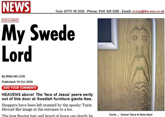 [아시아경제 이진수 기자] 예수 얼굴처럼 생긴 형상이 영국의 한 남자 화장실 문에서 발견돼 화제다.19일(현지 시간) 영국 타블로이드 신문 더 선은 스코틀랜드 글래스고 인근 브래헤드의 이케아 가구 대리점을 찾는 손님들이 남자 화장실 문에서 예수상과 접하고는 깜짝깜짝 놀란다고 전했다.길게 흘러내린 머리카락과 수염으로 특징지을 수 있는 예수상이 나무로 만든 남자 화장실 문에 선명하게 나타나 있다.한 고객은 “화장실로 향하다 신을 발견했다”고 한마디.영화 ‘반지의 제왕’에 등장하는 간달프처럼 생겼다고 말하는 손님도 있다. 하지만 ‘토리노의 수의’에 찍힌 예수상과 더 비슷하다고 주장하는 이도 있다.이케아 관계자들은 옛날 스웨덴 팝그룹 아바의 멤버였던 베니 안데르손처럼 생겼다고.이진수 기자 commun@asiae.co.kr<ⓒ세계를 보는 창 경제를 보는 눈, 아시아경제(www.asiae.co.kr) 무단전재 배포금지>