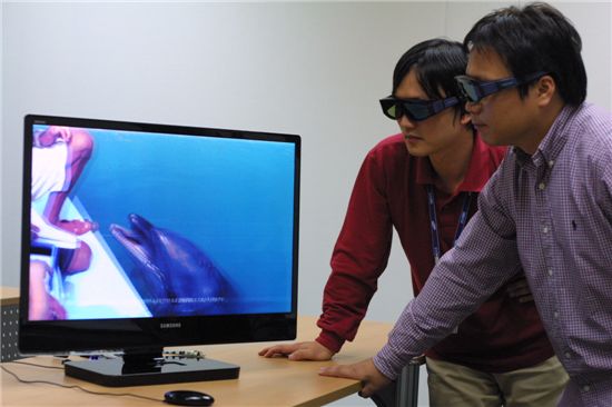 삼성모바일디스플레이(SMD)는 세계 최초로 HD급 30인치 AMOLED 3D(입체영상) TV 개발에 성공했다고 27일 밝혔다. 특히 SMD가 독자 개발한 기술을 적용, 3D TV의 고질적인 문제인 어지럼증을 없앤 획기적 제품이다. SMD가 개발한 제품은 '자체발광’ AMOLED의 특성으로 백라이트가 필요 없어 화면 크기가 30인치로 대형이지만 패널 두께는 2.5mm 초박형으로 100원짜리 동전 2개보다 얇다아울러 특허를 보유하고 있는 동시발광구동 기술을 적용, 3D TV의 좌우 영상이 겹쳐 보이는 '크로스토크' 현상을 완벽히 제거해 어지럼증을 없애고 눈의 피로감을 대폭 줄이는데 성공했다. 3D TV의 원리는 생생한 입체감을 내기위해 편광 안경의 왼쪽과 오른쪽 눈에 번갈아 가며 영상을 전달해 착시효과를 낸다. 그러나 크로스토크란 3D TV 시청 시 좌측 눈과 우측 눈으로 각각 보여야 할 영상이 서로 겹쳐 보이는 현상으로, 입체감을 떨어뜨리고 어지럼증을 유발해 3D TV 상용화에 가장 큰 문제점 중 하나로 지적돼 왔다.기존 TV(CRT, LCD, PDP)의 경우 화소로 구성된 수평의 선들을 따라 위에서 아래로 화면이 전환되는 순차적 구동 방식이어서 편광안경의 좌·우 편차를 이용한 3D 구현에 구조적 한계가 있었다.특히 LCD의 경우 액정의 응답속도가 좌·우 영상 변환 속도를 따라가지 못하기 때문에 선명한 3D 구현이 불가능했으나 이번 풀 HD급 30인치 AMOLED 3D TV의 경우는 화면 전체가 동시에 구동되는' 동시발광구동' 기술이 적용되어 크로스토크를 근본적으로 제거해 보다 선명한 3D 영상 구현이 가능해진 것. 또한 3D TV의 경우 착시효과를 내기 위한 화면 분리로 밝기가 2D TV에 비해 떨어지는 문제가 있었으나 AMOLED는 소자에 흐르는 전류의 양으로 화면 밝기를 미세하게 제어할 수 있다는 구조적 장점으로 이 문제를 해결했다. 이번에 개발된 세계 최초 Full HD급 30인치 AMOLED 3D TV는 오는 10월 28일부터 30일까지 일본 요코하마에서 열리는 'FPD 인터내셔널 2009'에 전시돼 일반에 최초로 공개될 예정이다. 김정민 기자 jmkim@asiae.co.kr<ⓒ세계를 보는 창 경제를 보는 눈, 아시아경제(www.asiae.co.kr) 무단전재 배포금지>