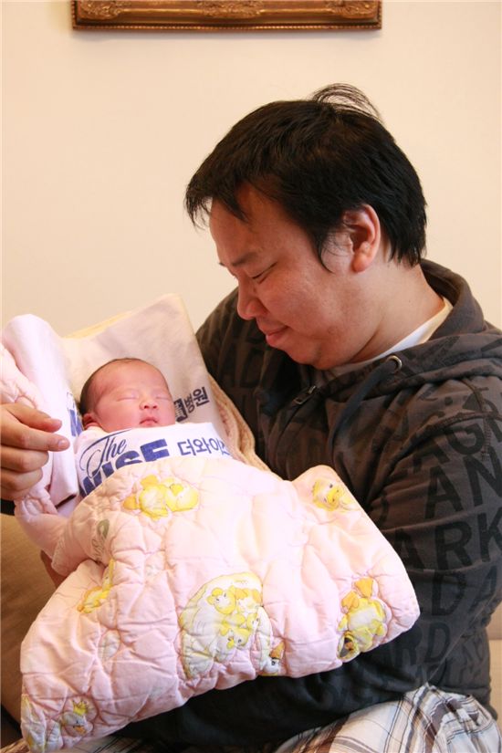 [아시아경제 박건욱 기자]개그맨 오지헌이 첫 딸을 공개했다. 오지헌의 아내 박상미씨는 29일 오전 1시48분 서울 강서구의 더와이즈황병원에서 자연분만으로 2.8kg의 건강한 딸을 낳았다. 현재 산모와 아이 모두 건강한 상태. 아빠가 된 오지헌은 "아기가 나를 하나도 안 닮았다. 엄마를 닮아 너무 예뻐서 크면 미스코리아 시켜야겠다"고 말했다. 지난해 8월 부부의 연을 맺은 오지헌과 한 살 연하 아내 박상미씨는 결혼 전 순결서약을 했던 사실이 알려져 화제가 된 바 있다. 박건욱 기자 kun1112@asiae.co.kr<ⓒ아시아경제 & 스투닷컴(stoo.com)이 만드는 온오프라인 연예뉴스>
