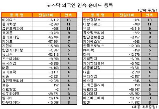 [표] 외국인, 올리브나인 8거래일 연속 순매도