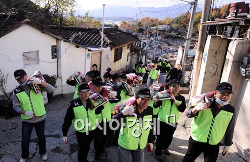 [아시아경제 윤동주 기자] KT 사랑의 봉사단 및 김우식 KT개인고객부문사장은 9일 서울 노원구 중계본동 저소득층밀집지역에서 연탄배달 및 쌀가마 기증 봉사활동을 펄치고 있다.윤동주 기자 doso7@asiae.co.kr<ⓒ세계를 보는 창 경제를 보는 눈, 아시아경제(www.asiae.co.kr) 무단전재 배포금지>