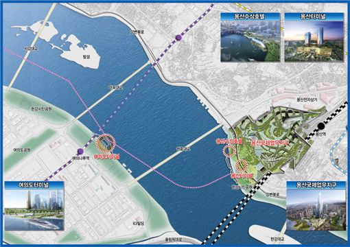 서해비단뱃길..용산에 5층 한강 수상호텔 들어서2012년 한강에서 경인아라뱃길을 통해 중국 상하이까지 크루즈선이 출항한다. 이때까지 여의도에 수상선착장과 터미널을 겸할 수 있는 수상시설(3600㎡)이 세워지고 용산에는 2016년까지 국제·연안터미널(1만2280㎡)이 각각 들어선다. 용산국제업무지구앞 한강에는 2016년까지 지상5층, 150실 규모의 수상호텔이 건립돼 관광자원화 된다.오세훈 서울시장은 지난 16일 홍콩 현지 특파원들과 가진 간담회에서 '서해비단뱃길' 조성계획을 담은 '홍콩선언'을 발표하고 서울을 동북아 수상관관중심도시로 만들겠다는 청사진을 밝혔다.서해비단뱃길은 용산·여의도~행주대교 남단까지의 총 연장 15km 구간을 서울시가 이름 지은 것으로 시는 경인아라뱃길(인천시 경서동~행주대교 남단, 총 연장 18km)이 완공되는 2011년 12월에 맞춰 한강에 배가 다니고 사람이 타고 내릴 수 있는 한강 주운기반시설 구축을 마무리할 계획이다.중국을 오갈 수 있는 5000t급 국제크루즈선과 2000~3000t급 국내크루즈선 운행이 가능하도록 양화대교 교각 간격이 조정되고 구 행주대교 일부는 철거된다. 서울시는 터미널 조성과 크루즈 운영을 위해 오는 12월 민간사업자를 공모하고 내년 4월 사업자를 선정할 계획이다. 김민진 기자 asiakmj@asiae.co.kr<ⓒ세계를 보는 창 경제를 보는 눈, 아시아경제(www.asiae.co.kr) 무단전재 배포금지>