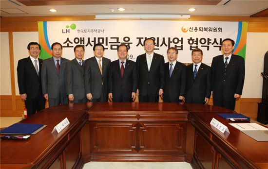 [아시아경제 황준호 기자] LH가 임직원 임금을 반납해 기금을 조성, 소액 서민 금융 지원에 나선다. 이에 임대주택 거주자, 영세자영업자 등 취약계층에서도 평균 300만원 가량의 소액 자금을 무담보로 대출받을 수 있는 길이 열렸다. 한국토지주택공사(LH)는 25일 본사 사옥에서 신용회복위원회와 제도 금융권 이용이 어려운 취약계층 및 영세 자영업자를 지원하기 위한 '소액서민금융지원을 위한 사업 협약'을 체결했다. 이에 LH는 최대 32억원 규모의 기부금을 다음달 1일부터 본격 지원할 예정이다. 이 재원은 지난 10월 서민들의 경제적 어려움에 동참하고자 하는 2급 이상 임직원들이 내년 말까지 15개월 동안 매달 약 2억여원씩의 월급여 반납해 조성된 기금이다. 이 기금은 신용회복위의 'LH 행복 Loan(가칭)'계정에 의해 별도 관리되며 주로 공사의 임대주택 거주자 또는 영세자영업자 등 은행 문턱을 넘기 힘든 취약계층의 생활안정자금이나 시설개선 및 운영자금으로 지원된다. LH는 이번 지원사업을 통해 긴급한 생계자금이 필요한 약 1000여명이 평균 300만원을 무담보로 지원받을 수 있도록 할 예정으로 대출금은 3년 이내에 상환해야 하며 금리는 연간 2~4%의 저금리로 대출자들의 부담을 낮췄다. LH는 또 대출금이 'LH 행복 Loan'으로 회수돼 다른 대상자에게 순환 지원됨으로써 지속적으로 이번 소액금융 지원의 수혜자가 확대돼 갈 수 있도록 했다. 이날 협약식에서 이지송 LH 사장은 "소액서민금융사업은 대통령께서 LH 출범식 축사를 통해 특별히 강조하신 사항"이라며 "앞으로 공사는 '서민을 따뜻하게' 지원하고 사회적 책임을 적극 실천해 국민의 신뢰를 회복해 나가겠다"고 강조했다.홍성표 신용회복위 위원장도 "LH의 이번 기부는 순수 기부로는 최대 규모이며 공기업 최초로 임직원이 임급을 반납해 기금을 조성 서민 지원에 나선 사례로 기록될 것"이라며 "사회 각계각층의 많은 관심이 이어지길 것"이라고 기대했다. 황준호 기자 rephwang@asiae.co.kr<ⓒ세계를 보는 창 경제를 보는 눈, 아시아경제(www.asiae.co.kr) 무단전재 배포금지>