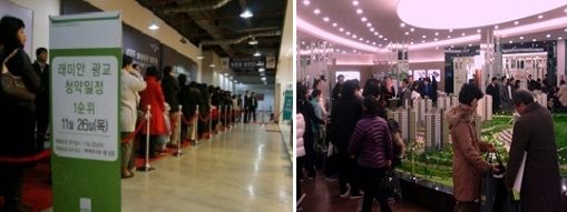 ▲ 지난 주말 '광교 래미안'(왼쪽)과 '광교 베르디움' 모델하우스에 4만명이 넘는 방문객이 몰렸다.