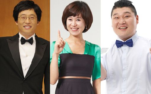 유재석(왼쪽부터), 박미선, 강호동