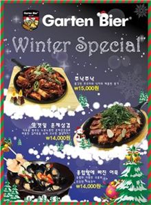 [아시아경제 김대섭 기자] 생맥주 프랜차이즈 가르텐비어(www.garten.co.kr)는 '겨울 스페셜 메뉴' 3종을 출시하고 오는 21일부터 전국 가맹점에서 판매할 예정이라고 7일 밝혔다.이번에 선보인 '생깻잎 훈제삼겹'은 짙은 훈제풍미가 식욕을 돋우는 훈제삼겹살과 매콤한 김치볶음을 더해 깻잎으로 멋과 향을 낸 것이 특징이다.또 쫄깃한 쭈꾸미와 낙지를 각종 채소와 매콤한 양념으로 맛을 낸 '쭈낙쭈낙'은 든든한 재료들을 듬뿍 넣어 식사대용으로도 손색이 없는 메뉴다. 이와 함께 '홍합탕에 빠진 어묵'은 담백한 홍합살과 시원한 국물에 어묵꼬치를 곁들여 푸짐하게 즐길 수 있는 것이 장점이다.김대섭 기자 joas11@asiae.co.kr<ⓒ세계를 보는 창 경제를 보는 눈, 아시아경제(www.asiae.co.kr) 무단전재 배포금지>