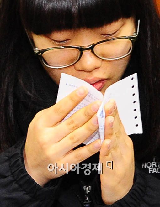 [아시아경제 윤동주 기자] 2010학년도 대학수학능력시험 성적 통지표가 배부된 8일 오전 서울 종로구 배화여고 한 3학년 학생이 떨리는 마음으로 자신의 성적을 확인하고 있다.윤동주 기자 doso7@asiae.co.kr<ⓒ세계를 보는 창 경제를 보는 눈, 아시아경제(www.asiae.co.kr) 무단전재 배포금지>
