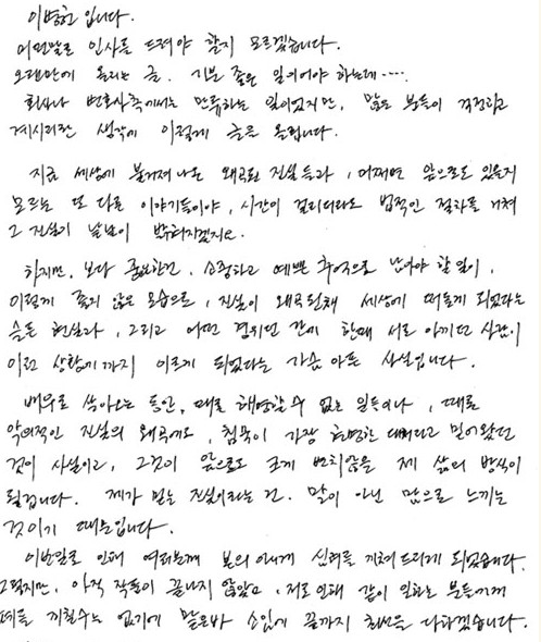 Lee Byung-hun's handwritten letter to fans [Lee Byung-hun's official website]