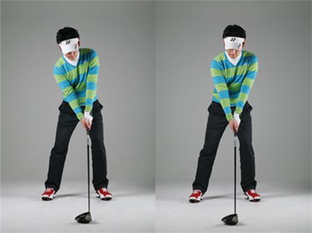[아시아경제 김세영 기자] 골프는 '자연과의 싸움'이다. 겨울철에는 특히 추위와 바람을 잘 다스려야 한다. 하지만 몸은 자꾸만 움츠러들어 말처럼 쉽지가 않다. 여기에 두꺼운 옷마저 스윙에 방해가 된다. 이번에는 그래서 셋업 등 작은 변화로도 바람에 따라 탄도를 조절할 수 있는 비법에 대해 알아보자. 더불어 장타를 날리기 위한 손쉬운 운동법도 소개한다. ▲ '셋업'만 바꿔도= 아마추어골퍼들은 통상 어드레스 자세를 취하면 <사진1-1>처럼 오른쪽 어깨가 아래로 처지고 척추각도 역시 약간 우측으로 기울어지게 된다. 볼은 왼발 뒤꿈치 선상에 놓게 된다. 이 자세 그대로 스윙을 하면 임팩트 순간 페이스가 올라가는 단계에서 볼이 맞게 돼 장타에 도움이 된다. 하지만 맞바람이 불 때를 생각해보자. 평소대로 샷을 날리게 되면 볼은 오히려 바람의 영향을 많이 받아 비거리를 손해보는 것은 물론 방향성도 나빠진다. 해답은 낮은 탄도의 샷을 구사하는 것이다. 이를 위해서 <사진1-2>처럼 의도적으로 척추각을 일자가 되도록 세운다. 어깨가 약간 타깃 쪽으로 쏠린다는 느낌을 가지면 된다. 이 단순한 변화는 임팩트 순간 페이스의 로프트 각을 낮춰주는 역할을 한다. 볼도 약간만 우측으로 놓으면 탄도는 더욱 낮아진다. 그러면 볼이 날아가는 체공시간은 약간 줄지만 런이 많아져 거리는 오히려 늘어나고 방향성도 좋다. 손목 동작으로 로프트각을 조절하는 방법도 있지만 이는 확률이 떨어진다는 것을 기억해 두자.[사진2-1](왼쪽) 릴리스 동작에서 오른손이 왼손을 덮어주면 드로우 구질이 나온다. [사진2-2] 오른손이 왼손 밑에 오도록 릴리스 동작을 취하면 페이드 구질을 날릴 수 있다.