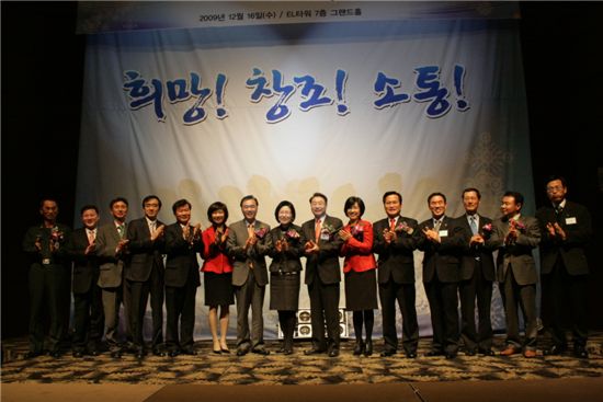 [아시아경제 박충훈 기자] 중소기업기술혁신협회(회장 한승호, 이하 이노비즈협회)는 16일 오후 서울 양재동 엘타워에서 '희망, 창조, 소통! 이노비즈인의 밤 2009'을 개최했다.이번 행사는 정부, 공공기관, 대기업 및 이노비즈기업과 회원사 약 300여명을 초청해 포상 및 감사패 수여, 축제 한마당 등이 진행됐다. 행사 1부에서는 회원사 추천을 통해 이노비즈기업 발전에 공헌한 이들에게 표창 및 감사패 증정의 시간을 가졌다.문형구 고려대학교 교수, 김은국 국민은행 안동지점 팀장 등 중기청장상(12명), 김길준 LG전자(주) 그룹장, 송진호 경기도 고양시청 주무관 등 협회장 표창(15명), 이기원 기술신용보증기금 이사 등에게 감사패(6명)가 수여됐다. 2부에선 장기자랑 경연, 네트워크 만찬 등 송년축제 한마당이 마련됐다. 한승호 회장은 "매년 이노비즈기업의 발전을 위해 애쓴 분들의 노고에 감사하는 자리로 한해를 마무리하고 있다"며 "앞으로 이노비즈 기업의 성장 동반자로써, 회원사와 함께 발전하는 협회로 거듭나겠다"고 밝혔다.한편 이날 행사에는 홍석우 중소기업청장, 정장선 국회의원, 배은희 국회의원, 이기우 중소기업진흥공단 이사장, 안윤정 한국여성경제인협회 회장, 양수길 국가경영전략연구원 원장 등이 참석했다.박충훈 기자 parkjovi@asiae.co.kr<ⓒ세계를 보는 창 경제를 보는 눈, 아시아경제(www.asiae.co.kr) 무단전재 배포금지>