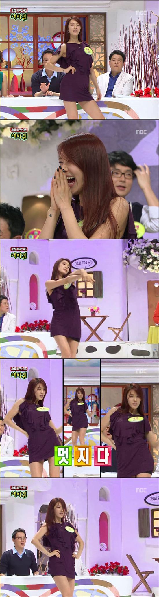 [아시아경제 고재완 기자]애프터스쿨 가희의 섹시댄스가 네티즌들 사이에서 화제를 모으고 있다.가희는 19일 방송한 MBC '세바퀴'에 출연해 동료 멤버 유이와 함께 '디바' 안무를 선보였다. 이어 그는 비욘세의 'Sweet Dreams'(스위트 드림스)에 맞춰 섹시 댄스까지 선보였다. 가희의 화려한 퍼포먼스에 이날 출연자들은 이례적으로 '앙코르'요청까지 하기도 했다. 가희의 파워풀한 댄스에 무용을 전공한 선우용여는 "온몸이 춤과 하나가 된다"며 극찬을 아끼지 않았고 이홍렬은 "출연료 안 받아도 좋으니 '세바퀴'에 매주 나오면 안 되겠냐"고 너스레를 떨기도 했다. 이날은 이들 외에도 임예진, 이경실, 김지선, 조혜련, 김태현, 조형기, 이수영, 아이유, 창민, 김현철 등이 출연해 입담대결을 펼쳤다.고재완 기자 star@asiae.co.kr<ⓒ아시아경제 & 스투닷컴(stoo.com)이 만드는 온오프라인 연예뉴스>