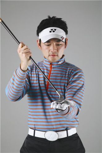 ▲ 페이스가 줄곧 얼굴을 향한다= 다음은 스윙하는 방법이다. 가장 중요한 대목이 스윙하는 동안 페이스 각이 똑같이 유지돼야 한다는 점이다. 다시말해 볼을 띄워야 한다는 생각에 무의식중에 손목을 사용해 퍼올리려는 시도가 최악이라는 이야기다. 어드레스 때의 왼손목 각이 피니시 때까지 고정돼야 한다. 감각을 익히는 요령은 간단하다. 클럽을 짧게 잡은 후 자세를 잡아보면 페이스가 얼굴을 향해 있다는 걸 알 수 있다. <사진2>에서 보듯 백스윙과 임팩트, 피니시까지도 페이스와 얼굴이 마주보도록 한다. 부드럽게 휘두르는 것도 잊지 말자. 임팩트 직전 가속을 멈추라는 의미가 아니다. 스윙을 주춤하게 되면 정확성이 떨어질 뿐만 아니라 거리 오차도 발생한다.[사진3] 굴릴 때는 동작을 최소로 줄이고 팔과 샤프트가 'y'를 유지하도록 한다.