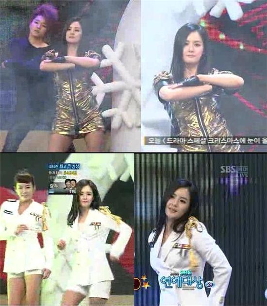 [아시아경제 고재완 기자]배우 최정윤이 지난 30일 열린 '2009 SBS 연예대상'에서 브라운아이드걸스의 '아브라카다브라' 댄스를 소화해내며 '몸치' 탈출에 성공했다.최정윤은 이 무대에서 '골드미스가 간다'(이하 골미다)의 송은이, 양정아 등과 함께 브아걸의 '시건방춤'을 췄다. 또 이어진 무대에서 소녀시대의 ‘소원을 말해봐’ '제기차기' 댄스를 완벽에 가깝게 소화해내 관객들의 박수를 받았다. ‘시건방춤’과 ‘제기차기춤’을 소화하기 위해 최정윤은 한 달 전부터 SBS 주말드라마 '그대, 웃어요'와 ‘골미다’ 촬영 틈틈이 연습한 것으로 전해졌다. 또 신사동에 위치한 연습실에서 '골미다' 멤버들과 구슬땀을 흘리기도 했다. 이번 공연을 통해 최정윤은 ‘골미다의 공식 몸치’로 낙인찍힌 불명예를 말끔히 해소했다 지난 10월 ‘골미다’ 웨딩싱어 도전기에서 최정윤은 카라에게 ‘엉덩이춤’을 배웠지만 뻣뻣한 웨이브를 선보이는 바람에 이 같은 닉네임을 얻은 바 있다. 최정윤은 ‘연예대상’을 마친 뒤 “연습 기간이 충분치 않아 긴장했었는데 공연을 무사히 마쳐 다행”이라며 “최선을 다했는데 이번 공연을 통해 몸치에서 탈출한 것 같아 의미 있는 시간이었다”고 웃었다. 이어 “사랑하는 동생 봉선이와 우리를 골드미스에서 탈출시키기 위해 애쓴 최문경 작가가 수상하게 돼 더욱 행복한 시간이었다”며 “두 사람의 수상을 진심으로 축하한다”는 의리 있는 축하 멘트를 하기도 했다.고재완 기자 star@asiae.co.kr<ⓒ아시아경제 & 스투닷컴(stoo.com)이 만드는 온오프라인 연예뉴스>