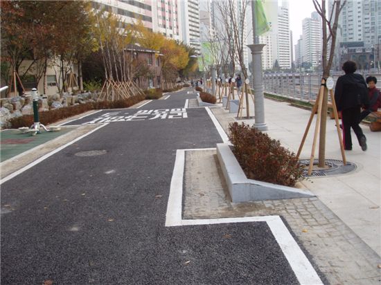 그리고 양지교~염광교 구간(300m)은 ‘건강의 거리’다. 체력단련 시설, 수생식물 관찰 목재데크, 벽천분수 등 주민들의 웰빙 공간으로 꾸몄다. 좌우측엔 테마가 있는 보행녹도를 조성하고 주말엔 차 없는 거리로 운영된다. 마지막 염광교~새싹교 구간(310m)은 ‘참여의 거리’다. 각종 지역 문화 행사 등을 열 수 있도록 꾸몄다. 특히 차량 운행 속도 저감을 위해 차도와 보도의 경계선이 들쑥날쑥한 초커형으로 조성하고 주민 안전을 위해 보행로를 신설했다. 아울러 노원의 역사인물 조각상도 만들었다. 임진왜란 당시 노원평야 전투를 승리로 이끈 의병장 고언백 장군과 수락산 중턱에 기거했던 매월당 김시습 등 10명 내외의 인물을 벽면에 환조와 부조 형식으로 조성했다. 또 도시미관 향상과 쾌적한 녹지공간 확보를 위해 당현천변을 따라 각종 수목과 꽃도 심었다. 수목은 왕벚나무외 23종 1만 4000주를 꽃은 3종 8700본이다. 쾌적한 환경을 위해 30본의 전신주를 전면 지하화 하는 한편 염광아파트 등 3개 단지 담장을 허물어 정자, 쉼터 등의 편의 시설을 조성했다. 이밖에 각종 인도의 포장도 화강석판석포장, 고무블록 등 구간별로 다양화 했다. 이노근 구청장은 “주간은 조형물로 경관성을 제고하며 야간엔 다양한 조명을 연출, 사람들이 즐겨 찾는 걷고 싶은 거리로 올 상반기 당현천 생태하천 복원과 함께 명소가 될 것으로 기대된다”고 말했다. 박종일 기자 dream@asiae.co.kr<ⓒ세계를 보는 창 경제를 보는 눈, 아시아경제(www.asiae.co.kr) 무단전재 배포금지>